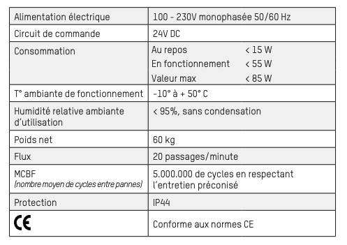 Caractéristiques Techniques Standard